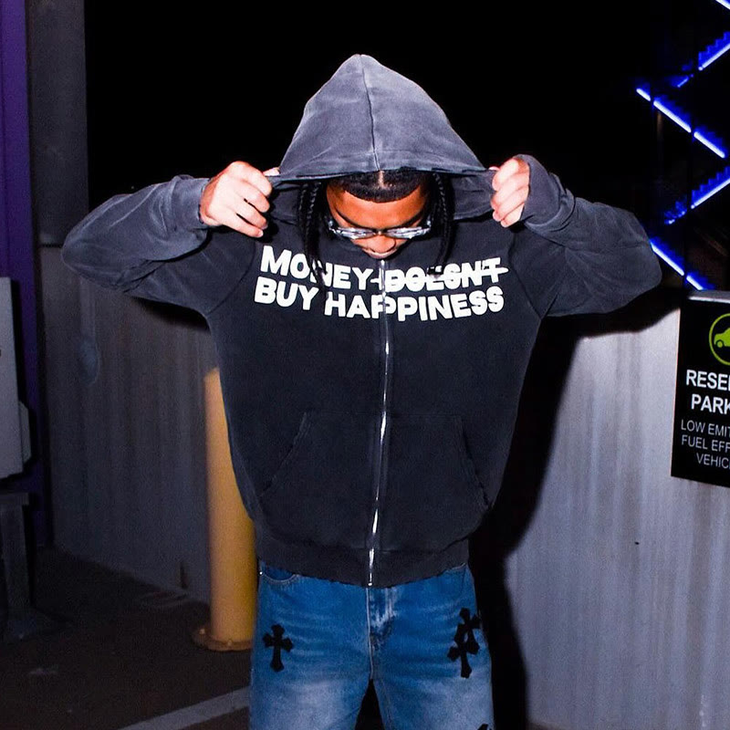 Unisex Money Doesn't Buy Happiness Print Zip Up Hoodie