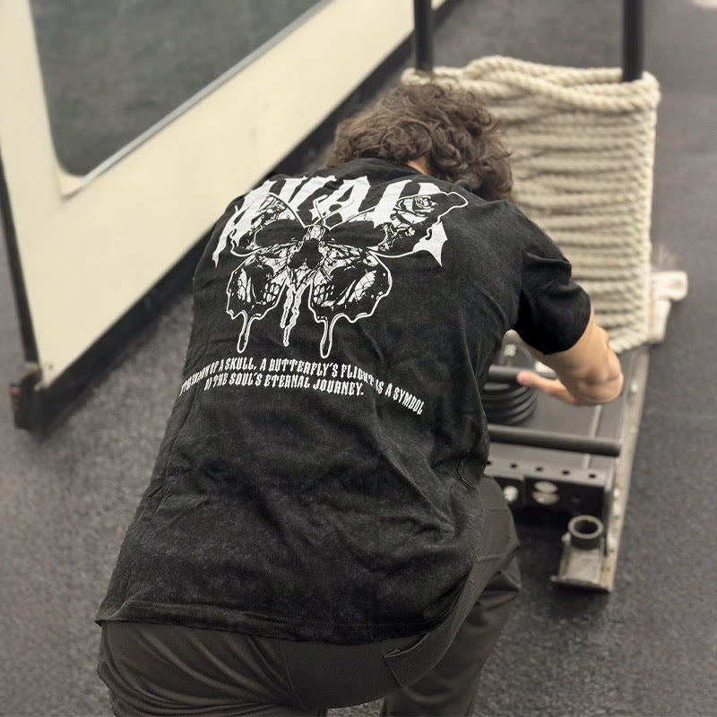 Unisex Skull Butterfly Print Acid Washed T-shirt