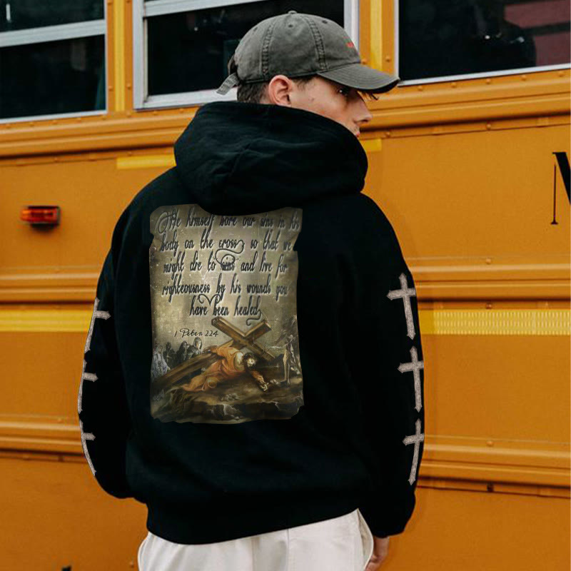 Men's Yahuah Cross Letter Printing Hoodie Two-piece Set