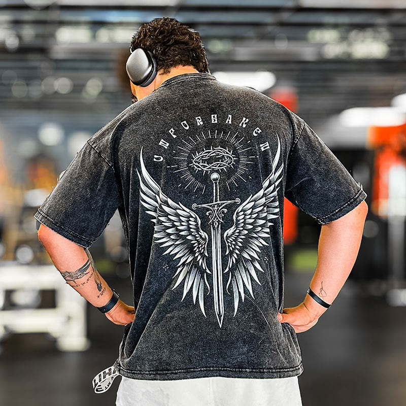 Unisex Sword Of Judgment Print Acid Washed T-shirt