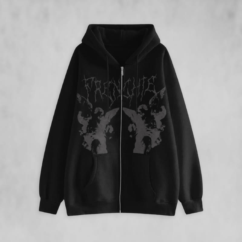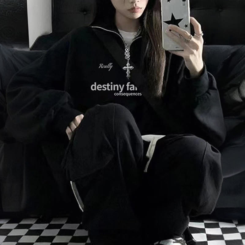 Stand Collar Destiny Fantastic Consequences Print Zipper Casual Fleece Sweatshirt