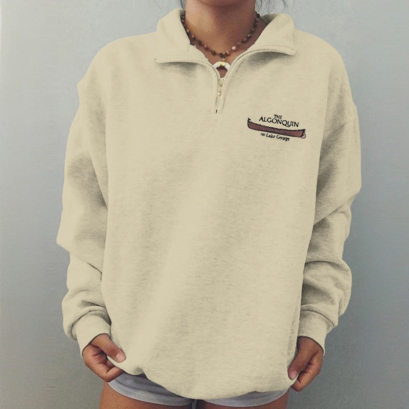 Stand Collar The Algonquin On Lake George Print Zipper Casual Fleece Sweatshirt