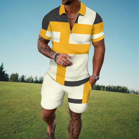 One iconic option for men's summer two-piece sets is the classic polo shirt set. Polo shirts exude a timeless charm and offer a blend of sophistication and casual style. Crafted from breathable fabrics like cotton or linen, polo shirt sets provide comfort even on the hottest days. The short-sleeved design allows for increased airflow, keeping you cool and at ease throughout the summer season. Moreover, the versatility of polo shirt sets enables effortless transitions between different settings, making them suitable for both day and night occasions.