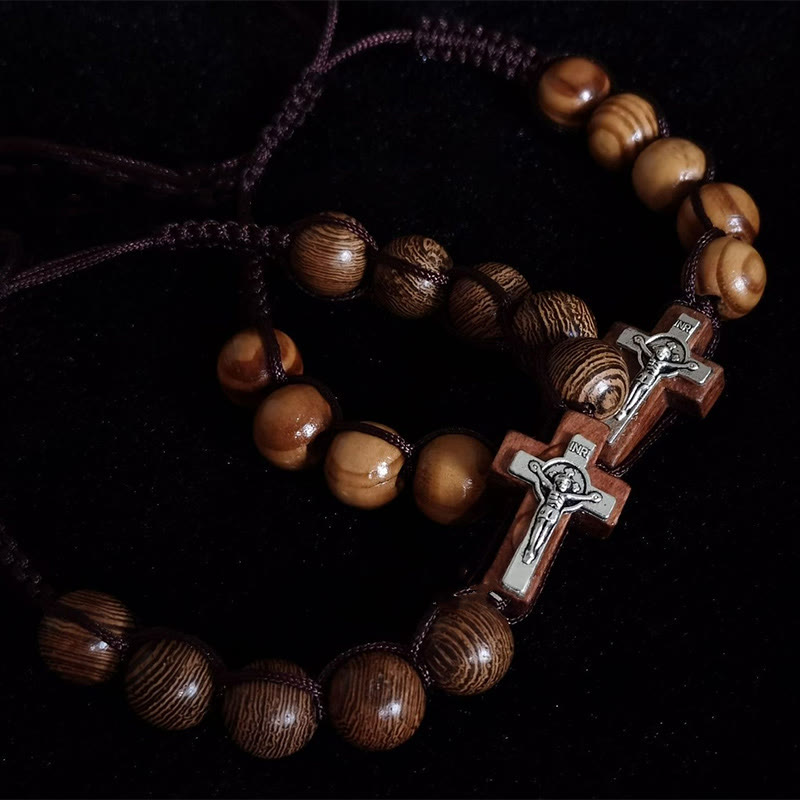 Cross Wood Braided Bracelet