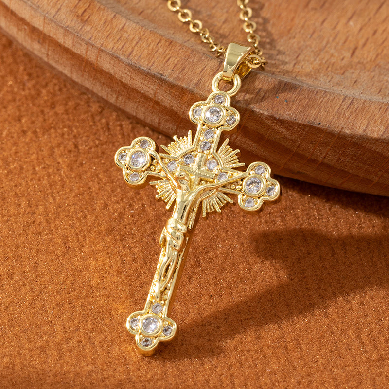Jesus Crucifixion Colored Zircon Necklace