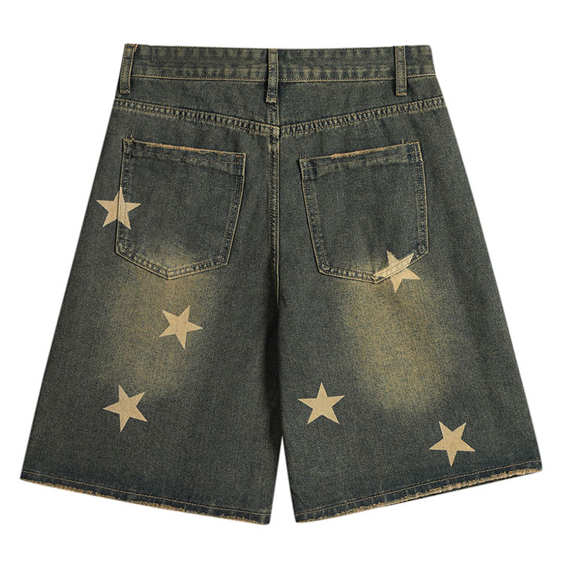 Five-pointed Star Printed Washed Loose Wide-leg Denim Shorts