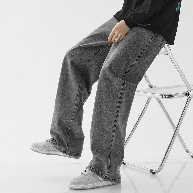 Retro Trendy Loose Large Pocket Drawstring Wide Leg Casual Jeans