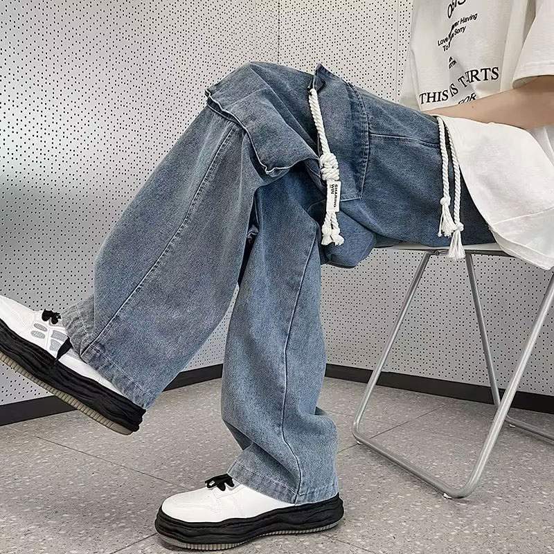 Hip-hop Trendy Versatile Drawstring Straight Leg Loose Jeans