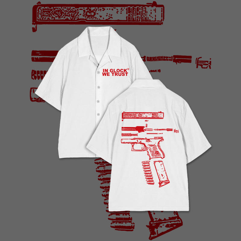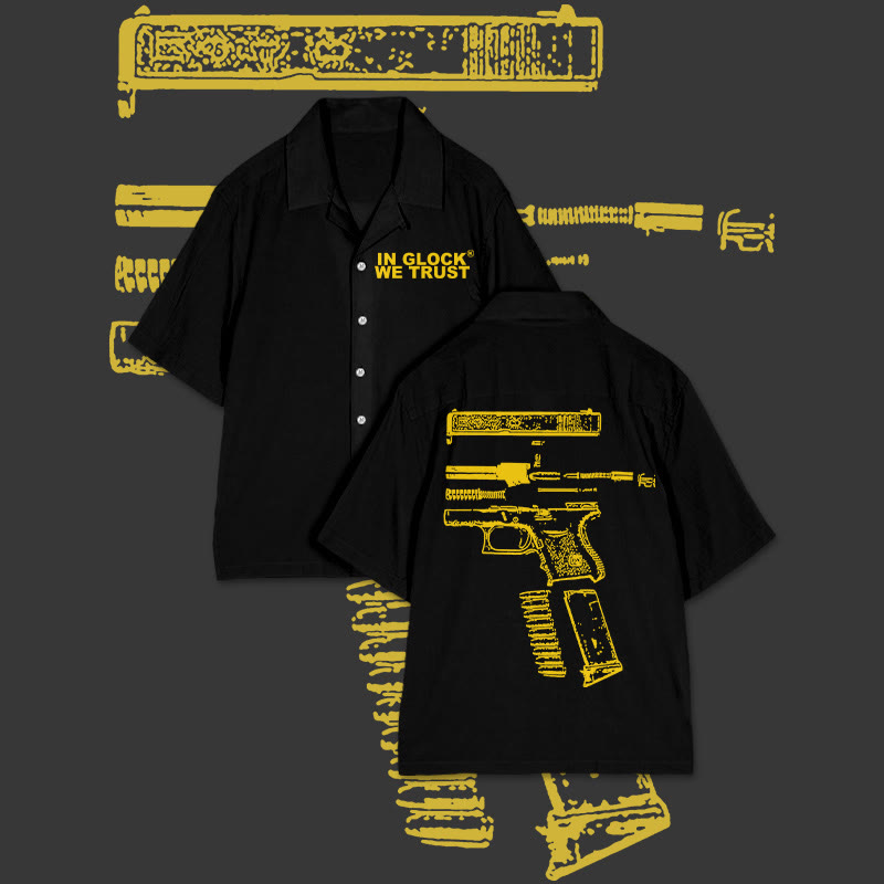 In Glock We Trust Print Camp-collar Shirt