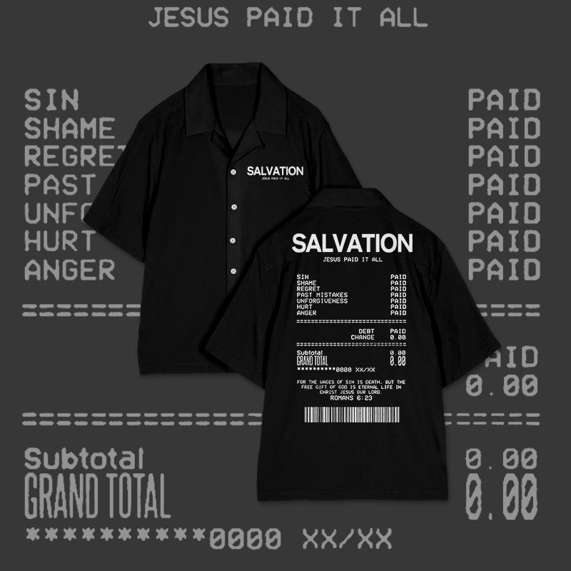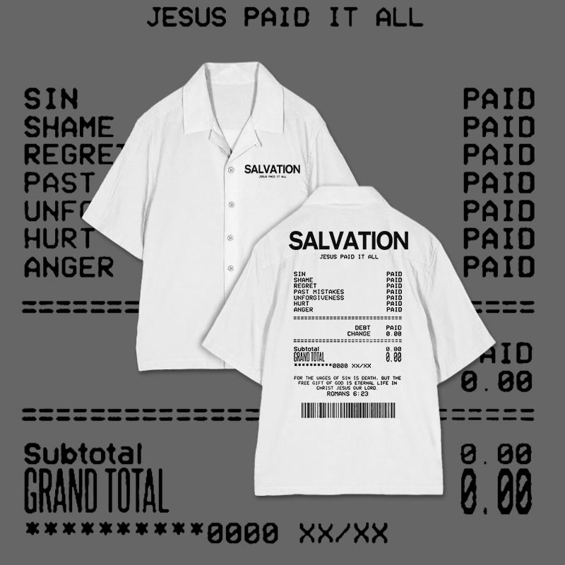 Jesus Paid It All Salvation Receipt Print Camp-collar Shirt