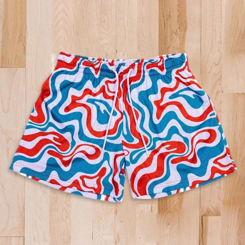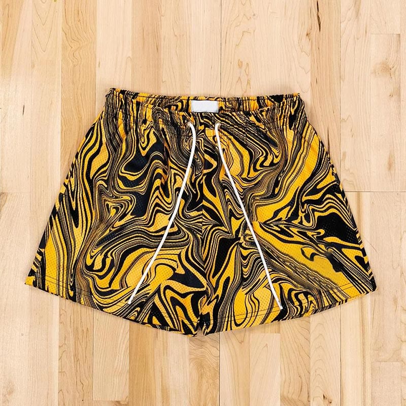 Street Style Abstract Line Print Mesh Shorts