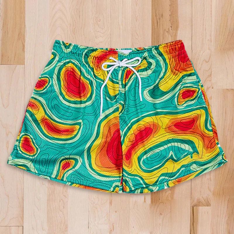 Street Style Abstract Lines Contrast Print Mesh Shorts