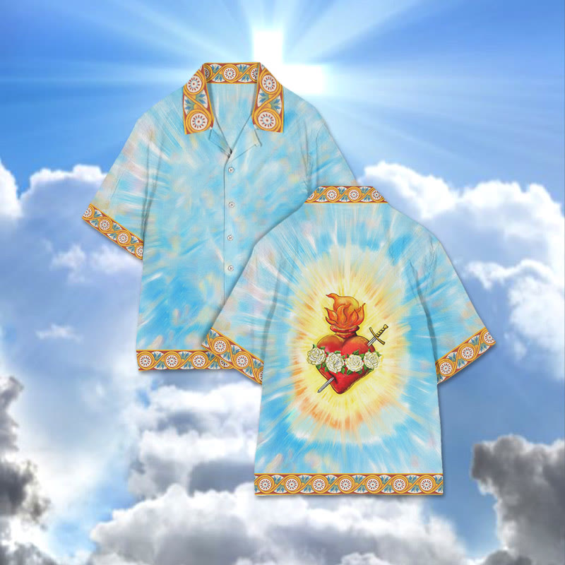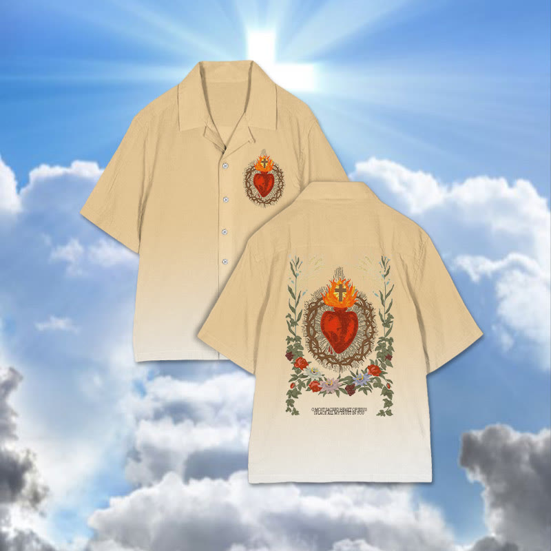 Immaculate Heart Of Mary Print Camp-collar Shirt
