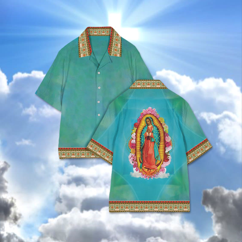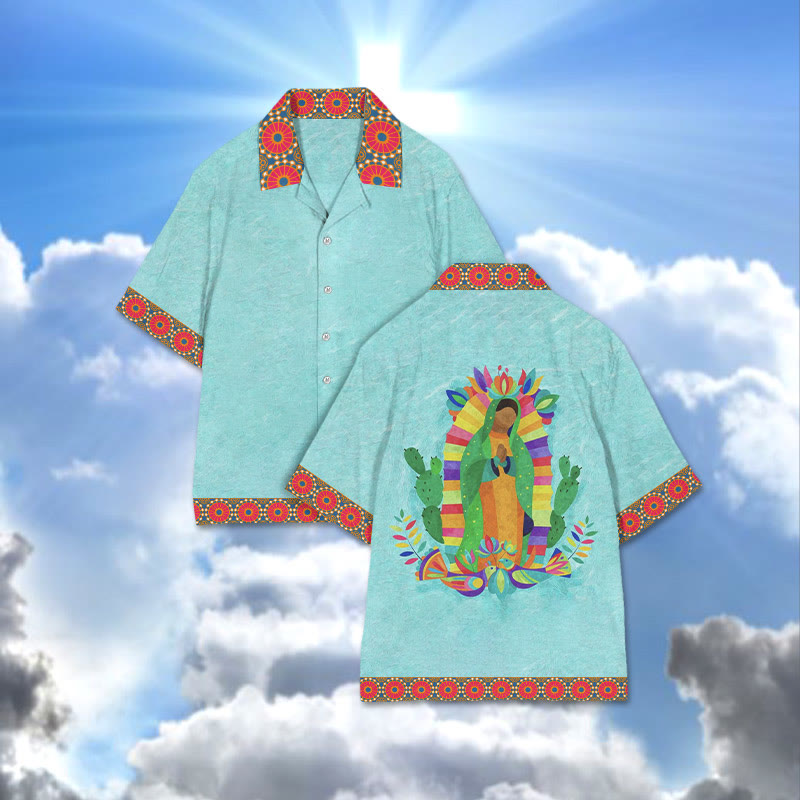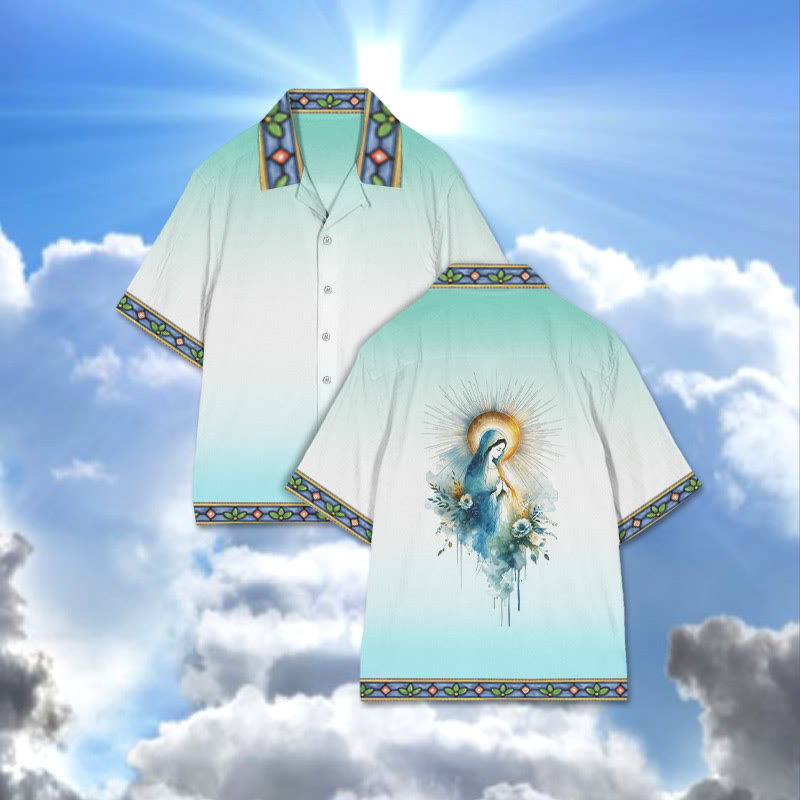 Watercolor Virgin Mary Print Camp-collar Shirt