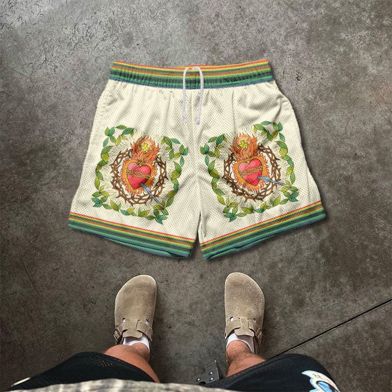 Jesus Birth Oil Painting Print Mesh Casual Shorts