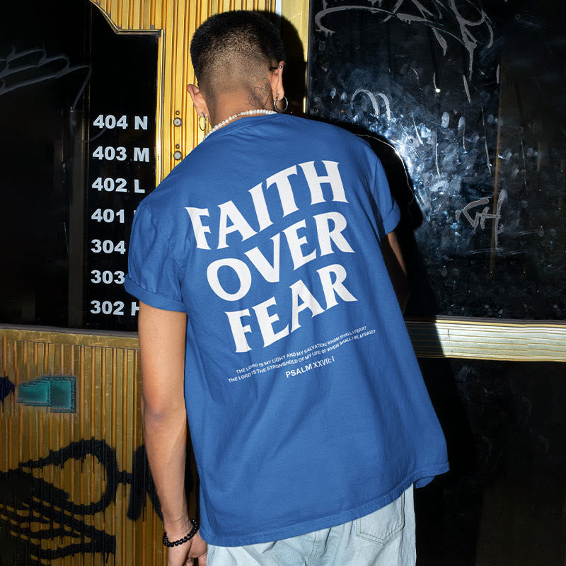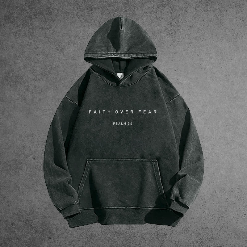 Unisex Faith Over Fear Psalm 34 Vintage Printed Washed Hoodie