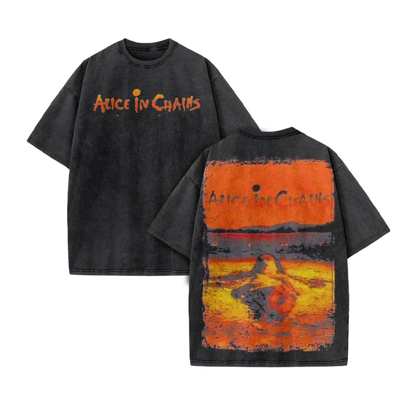 Unisex Alice In Chains Print Acid Washed T-shirt