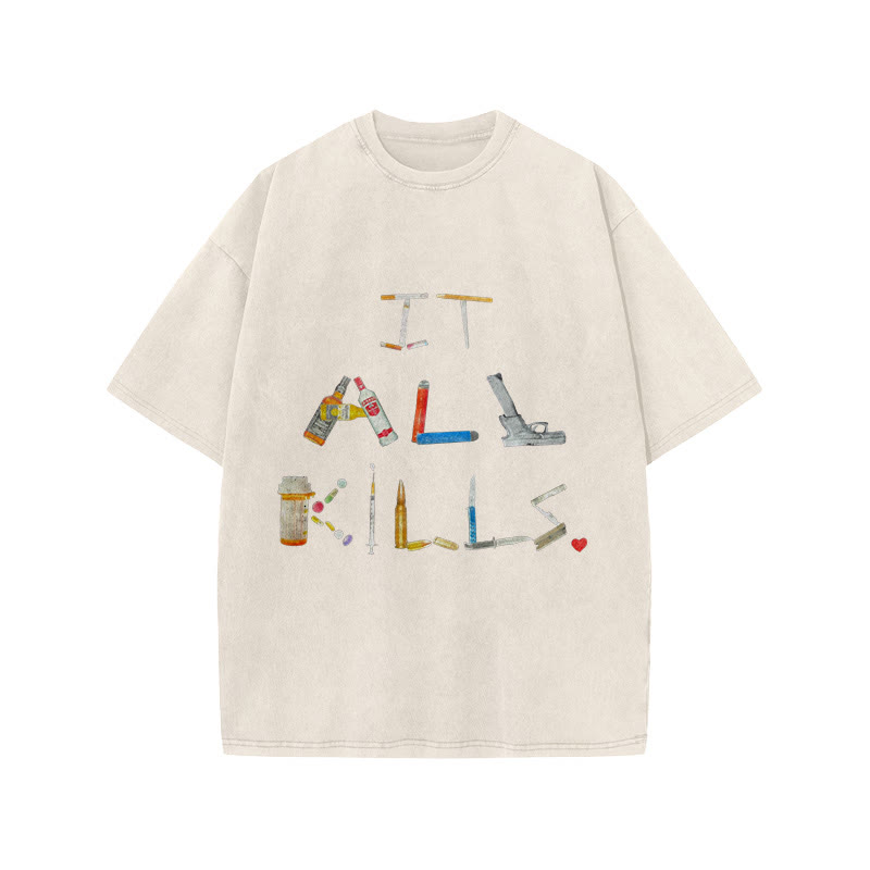 Unisex It All Kills Print Acid Washed T-shirt
