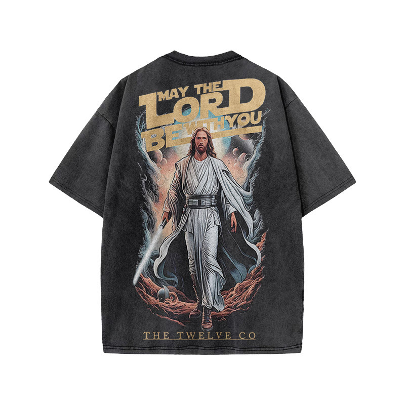 Unisex May The Lord Be With You Print Acid Washed T-shirt