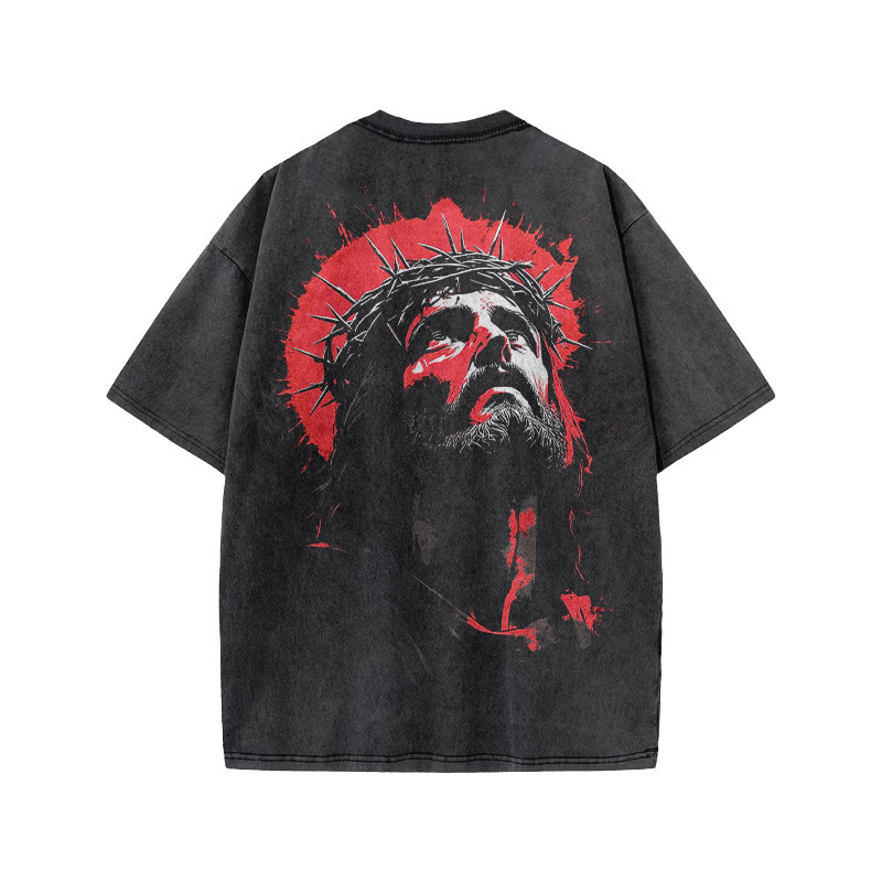 Unisex Jesus Looking Up Print Acid Washed T-shirt