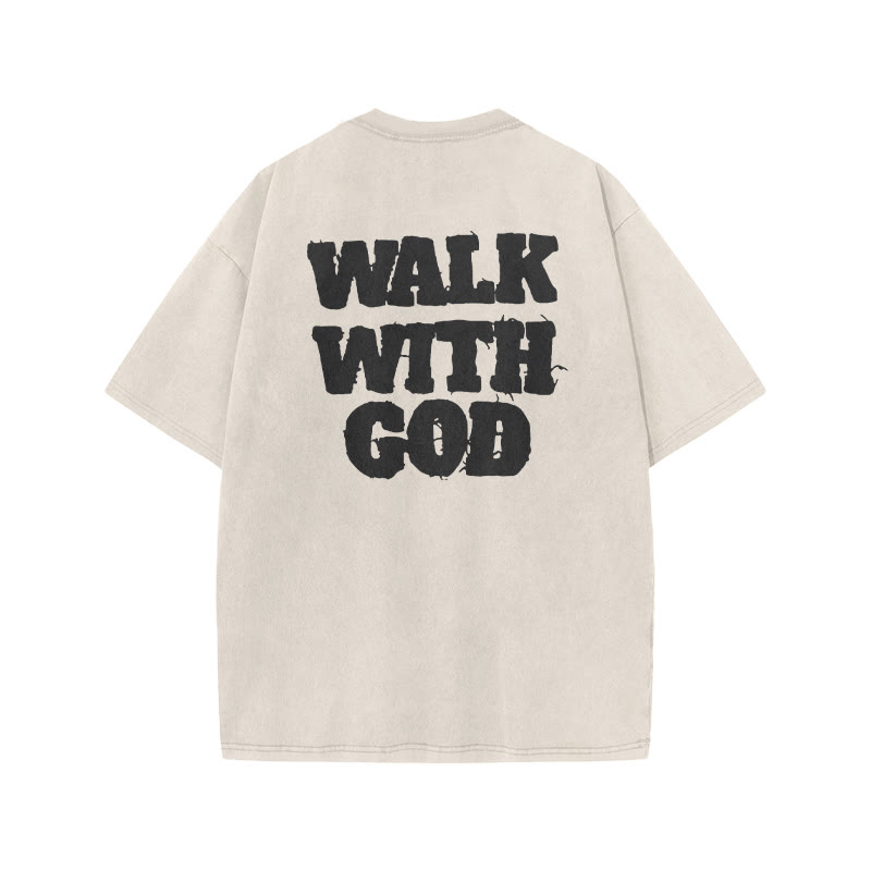 Unisex Walk With God Creative Print Acid Washed T-shirt