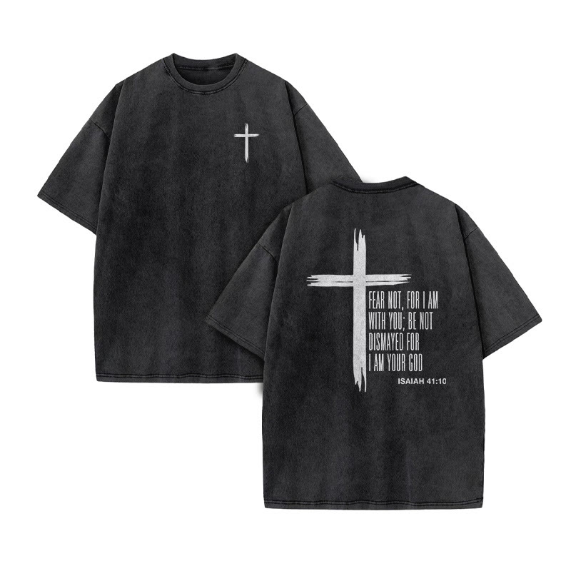 Unisex Isaiah 41:10 Cross Print Acid Washed T-shirt