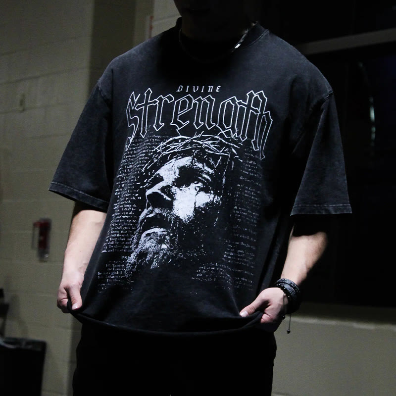 Unisex Jesus And Eternity Print Acid Washed T-shirt