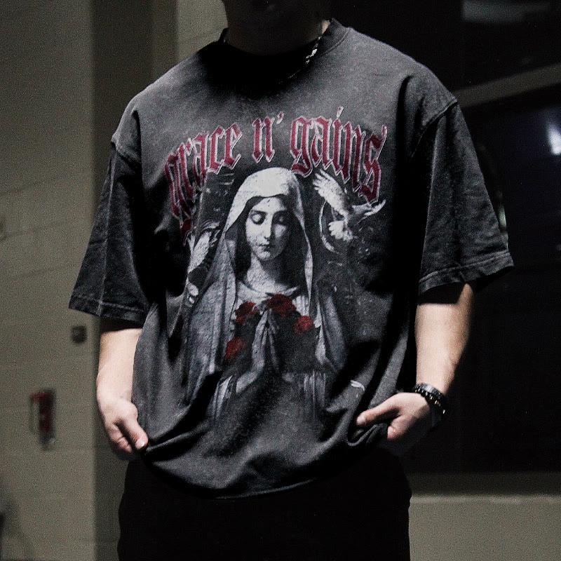 Unisex Grace & Gains Print Acid Washed T-shirt