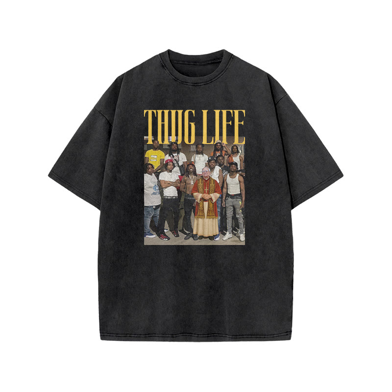 Unisex Thug Life Pope From O-block print Acid Washed T-shirt