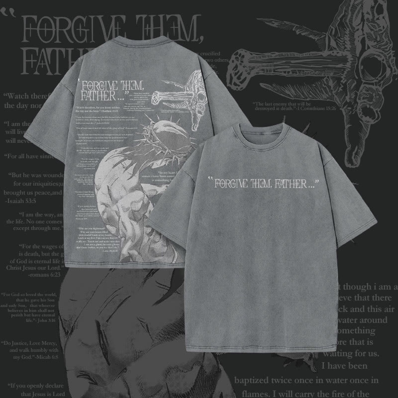 Unisex Forgive Them,Father Bible Verses Print Acid Washed T-shirt