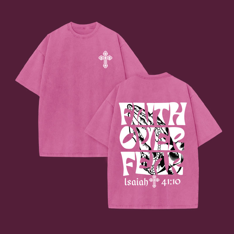 Unisex FAITH OVER FEAR Print Acid Washed T-shirt