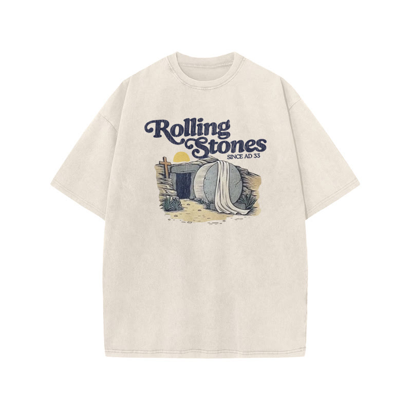 Unisex Rolling Stones Cross Print Acid Washed T-shirt