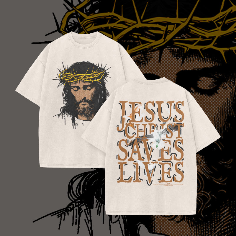 Jesus Face Print Acid Washed T-shirt