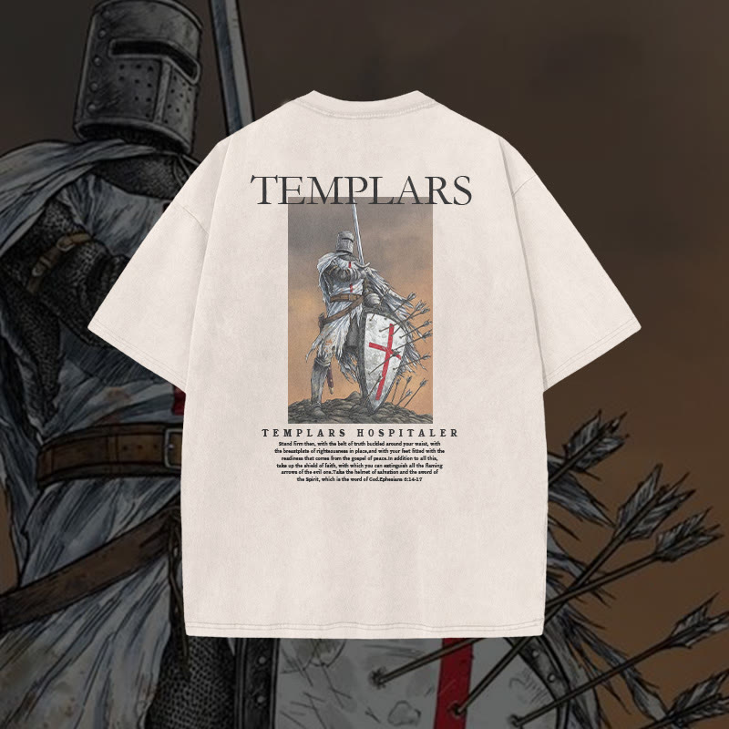 Templars Hospitaler Print Acid Washed T-shirt