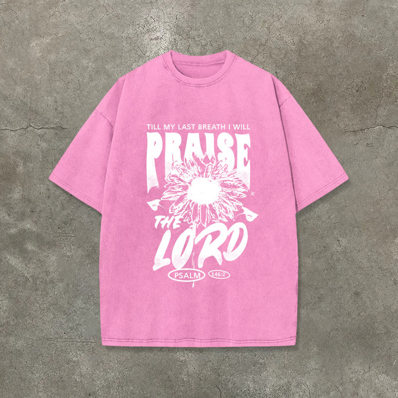 Vintage Till My Last Breath I Will Praise The Lord Flower Print Acid Washed Crew Neck Unisex T-shirt