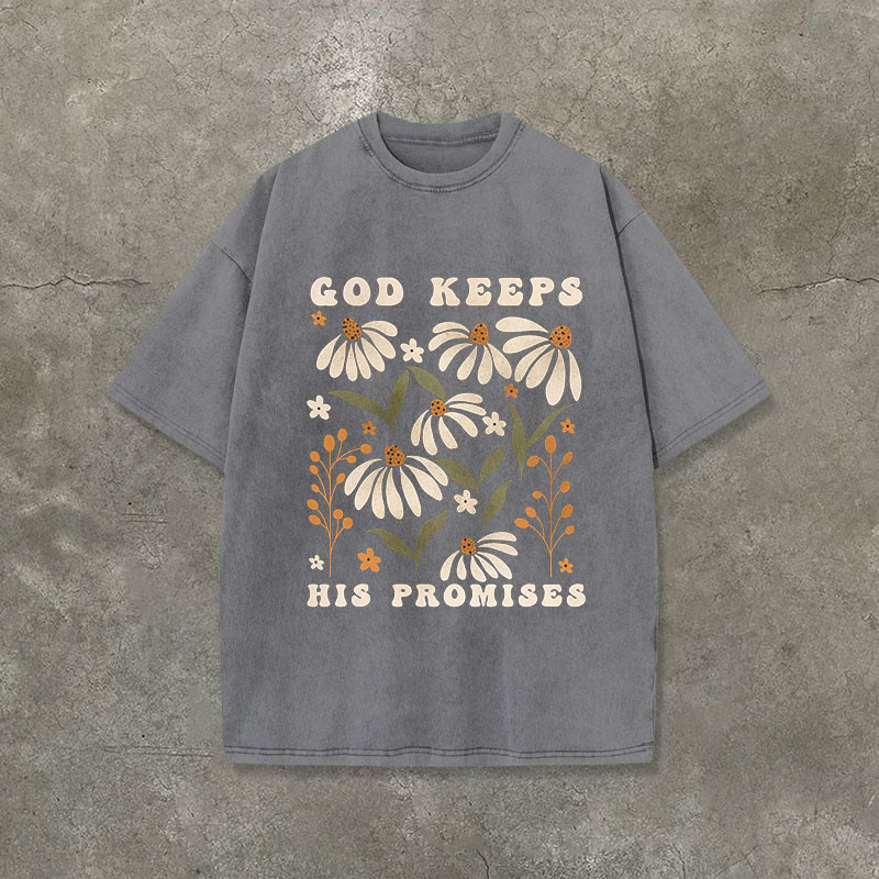 Vintage God Keeps His Promises Flower Print Acid Washed Crew Neck Unisex T-shirt