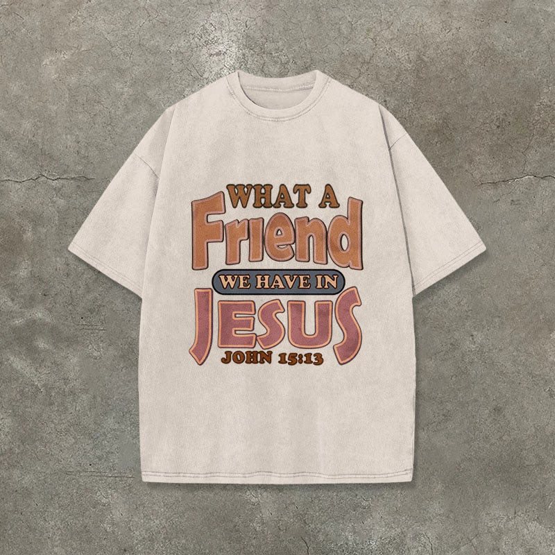 Vintage What A Friend We Have In Jesus Print Acid Washed Crew Neck Unisex T-shirt