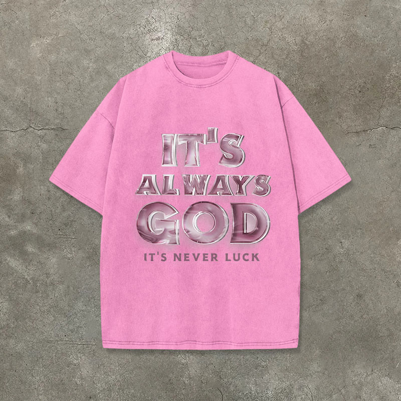 Vintage It's Always God It's Never Luck Print Acid Washed Crew Neck Unisex T-shirt