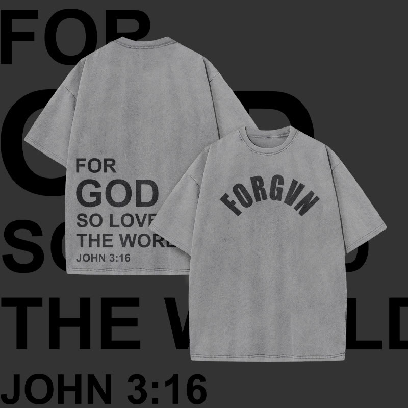 For God So Loved The World Print Acid Washed T-shirt