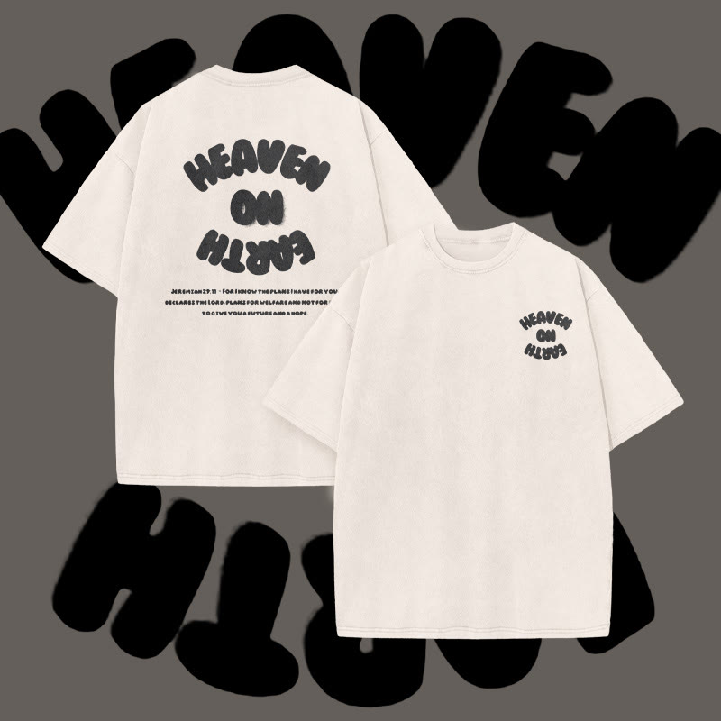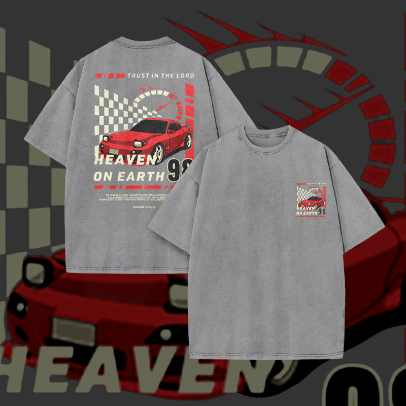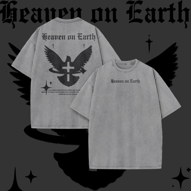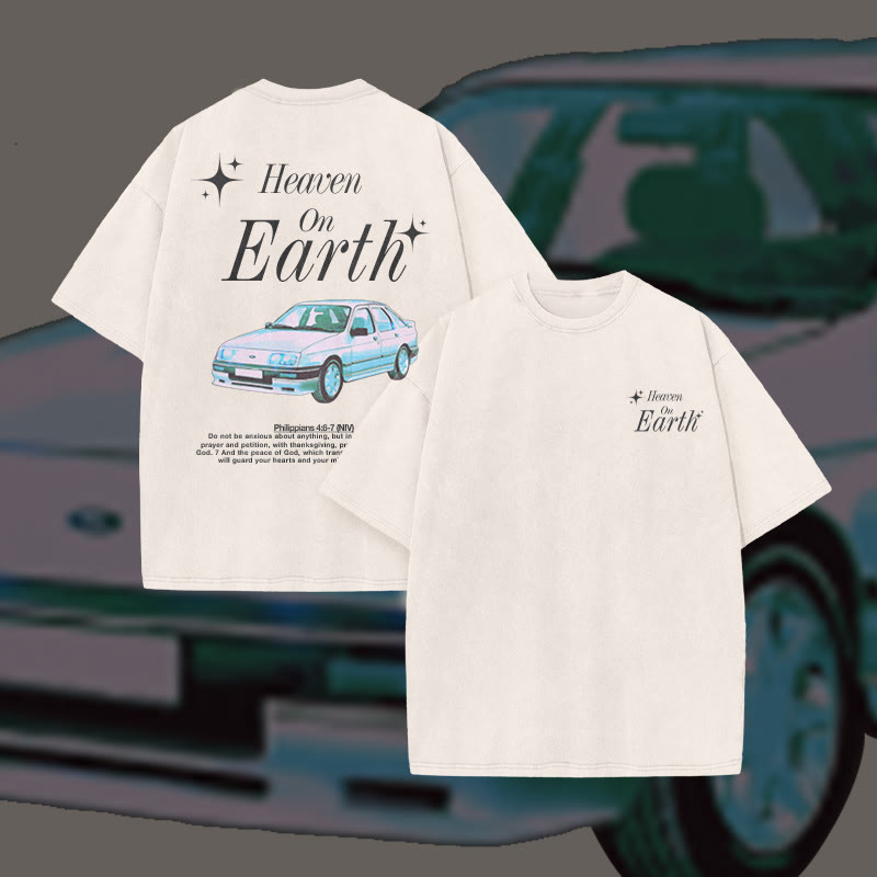 Unisex Heaven On Earth Print Acid Washed T-shirt