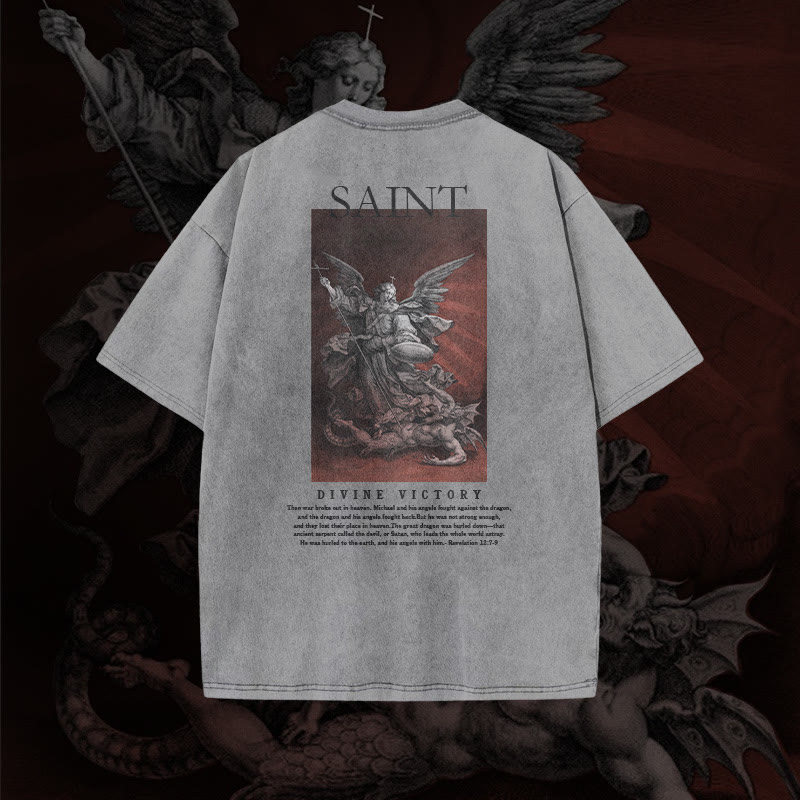 Unisex Divine Victory Print Acid Washed T-shirt