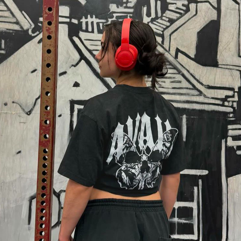 Unisex Skull Butterfly Print Acid Washed T-shirt