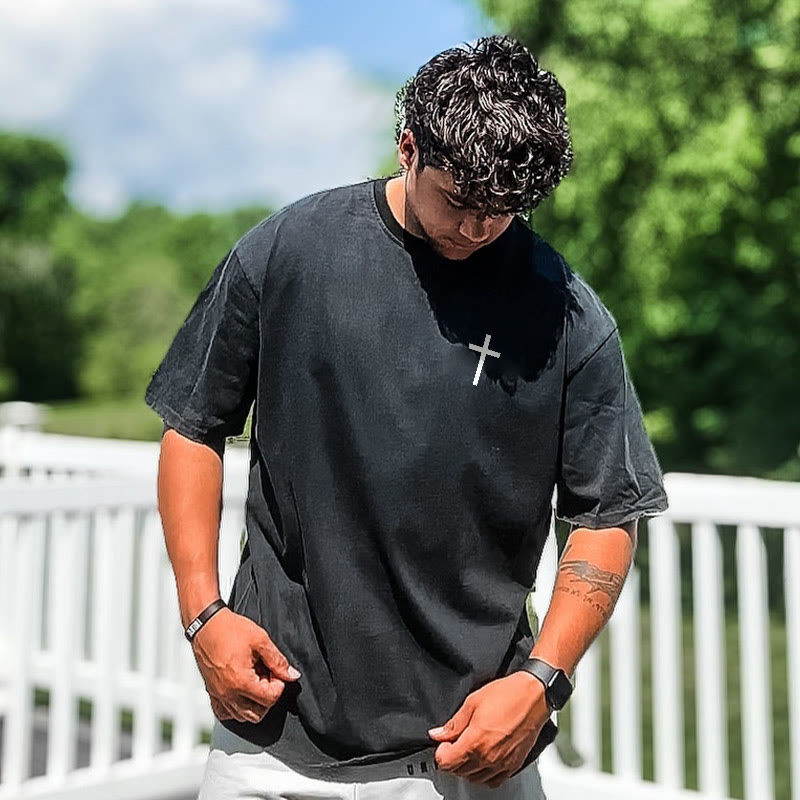 Fight For Faith Print Acid Washed T-shirt