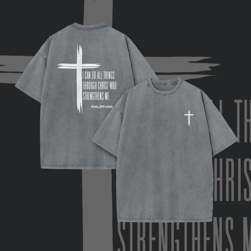 Unisex Philippians 4:13 Print Acid Washed T-shirt