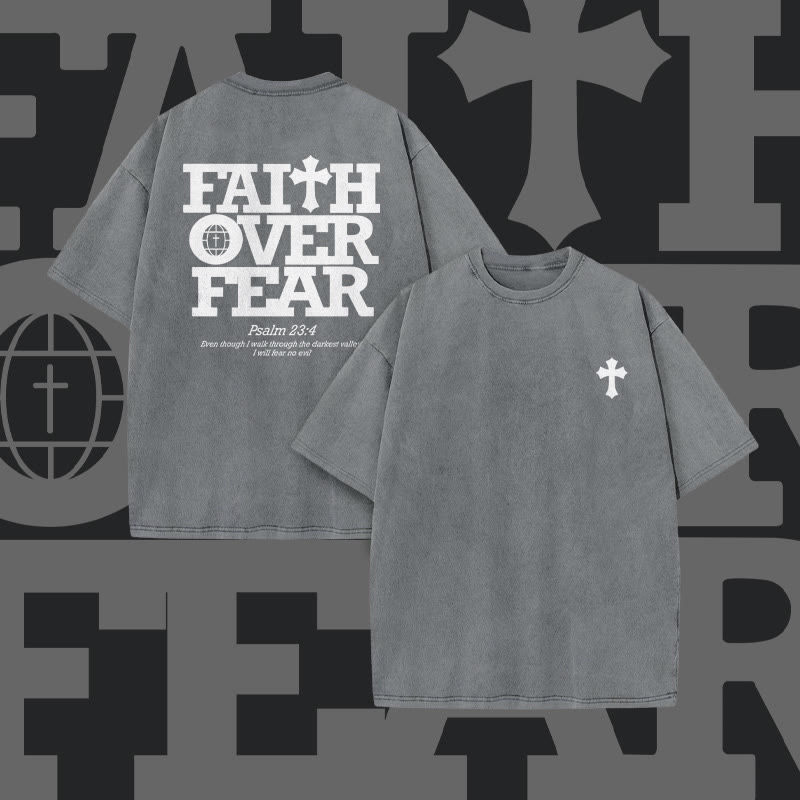 Unisex Faith Over Fear Print Acid Washed T-shirt