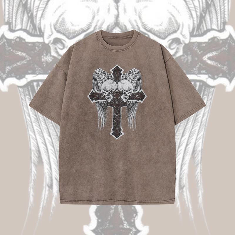 Unisex Dark Angel Cross Washed T-shirt