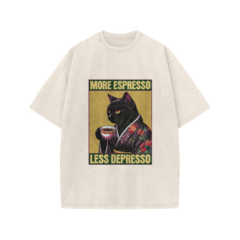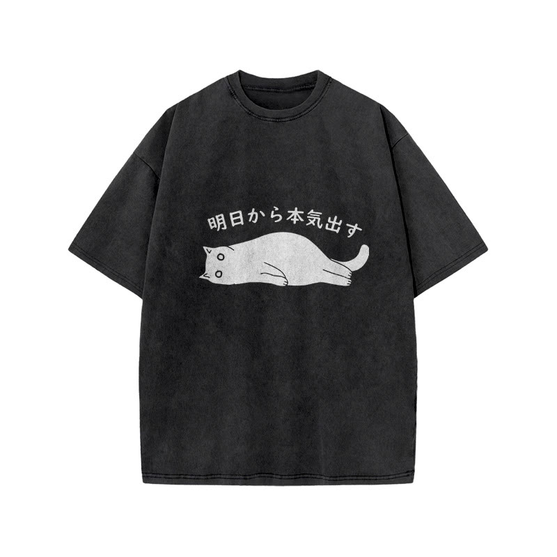 Unisex Funny Melancholy Cat Print Acid Washed T-shirt