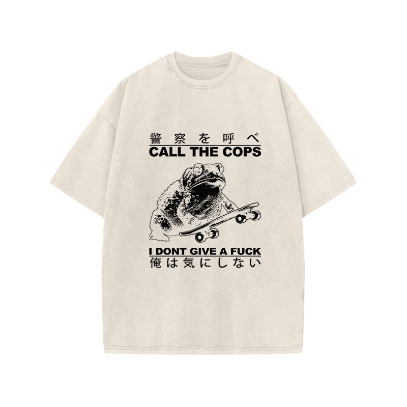 Unisex I Don't Care Frog Vintage Print Acid Washed T-shirt