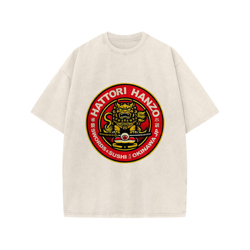 Unisex Okinawa Japan Hattori Hanzo Sword And Sushi Print Acid Washed T-shirt
