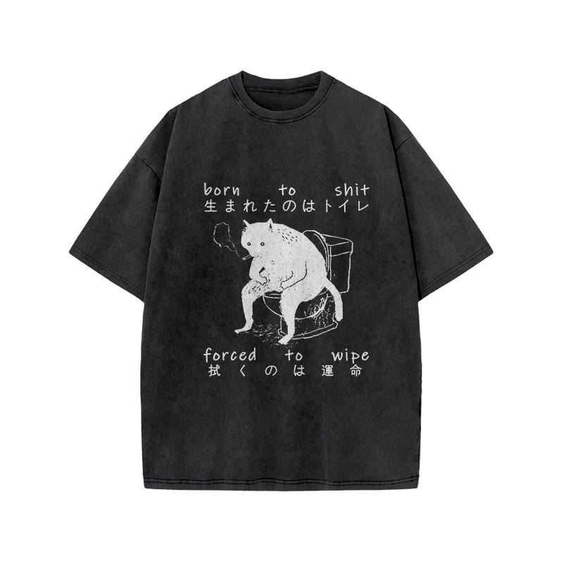Unisex Born To Shit Forced To Wipe Print Acid Washed T-shirt